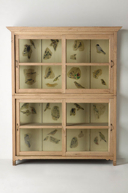 ReplyDeletei'm not much for shopping, but that double cabinet with the vintage bird pictures pasted to the back did catch my eye...